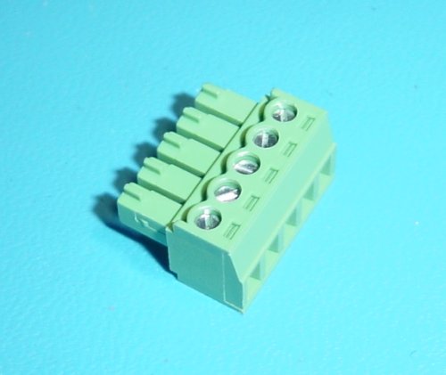 Female 5 pin 3.81mm Terminal Block, Screw Type. Fits onto the Terminal Block connector of various Modtronix boards. For example, the SBC44B Main Bo...