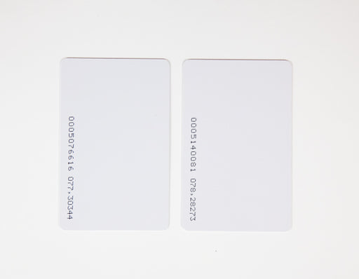 A pack of two RFID cards. Features EM4001 ISO based RFID IC 125kHz Carrier 2kbps ASK Manchester encoding 32-bit unique ID 64-bit data...